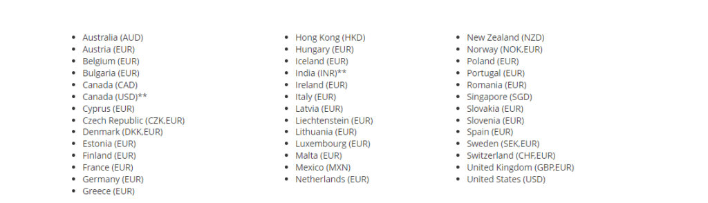- First, verify that your country and currency are on the list shown in the image above, then gather up the information as specified